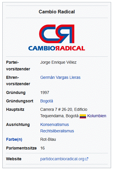 2 ↑ ¿Quiénes somos? partidocambioradical.org, abgerufen am 07. September 2023 (spanisch)