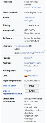 Bei den kolumbianischen Parlamentswahlen 2018 wurden vier seiner Mitglieder in den kolumbianischen Kongress gewählt. Vor den Parlamentswahlen 2022 bildete die Partei die Koalition Nos Une Colombia mit der MIRA.