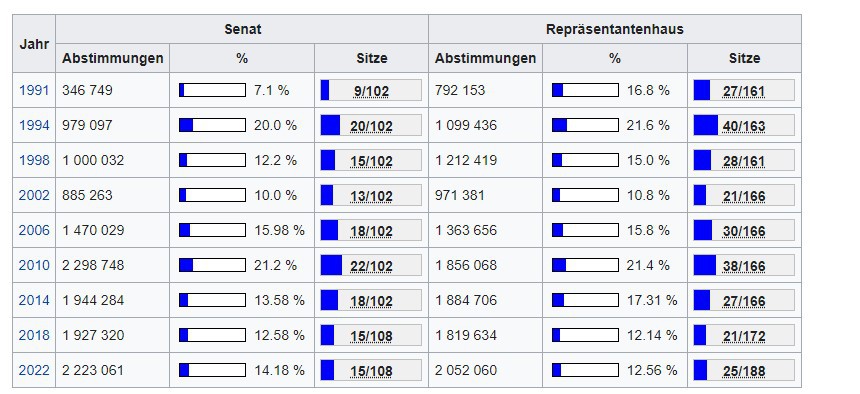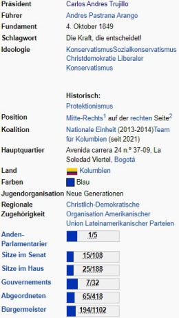 Aktuell, 15 Sitzen im Senat und 25 in der Kammer. Präsident ist Carlos Andres Trujjilo. Präsidentschaftskandidat war 2022 Federico Gutierrez mit 23,91%. Stimmen