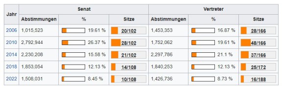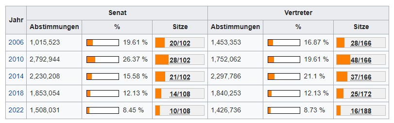 Bei den Parlamentswahlen im März 2022 erreichte die Partei 10 Senatorensitze und 15 Abgeordnetensitze. In einer Sitzung des Gremiums am Mittwoch, dem 7. September 2022, ratifizierte die Partei der U die Entscheidung, sich als Regierungspartei zu deklarieren. Sie bekräftigt ihren Willen die nationale Regierung bei den Initiativen zu unterstützen, die darauf abzielen, bessere Lebensbedingungen für die Millionen von Bürgern zu erreichen. Im Besonderen bei den Vorschlägen, die darauf abzielen, die Armut zu verringern und Frieden zu schaffen.