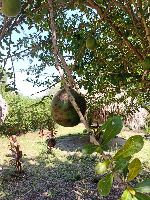 Über ein Doppeltor kommt man auf einen großen Platz mit einem großen Baum im Zentrum. Darunter ein paar versteine Reptilienschädel. Dahinter eine Baracke als Verwaltungsgebäude.