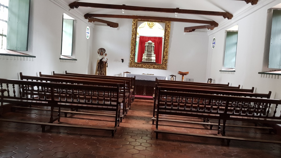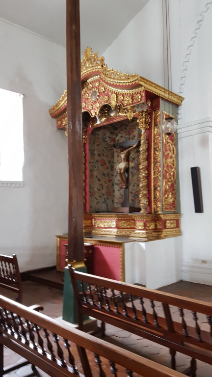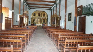Seine Anlage besteht aus mehreren Schiffen, die durch Holzsäulen getrennt sind. Im rechten Kirchenschiff befindet sich das Taufbecken aus Stein.