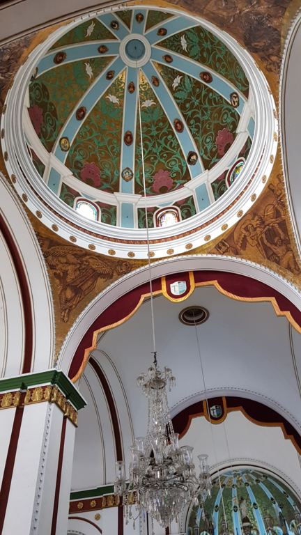 Die dreischiffige Basilika wurde aus Ziegelstein errichtet. Die Kirche besitzt zwei 33 Meter hohe Glockentürme über dem Eingang, von denen einer am 18. März 1909 eine Uhr aus Frankreich erhielt. Drei Portale führen in die 80 Meter lange Kirche, deren Beleuchtung durch eine Vierungskuppel mit Tambour unterstützt wird. Der aufwändige Altar steht in einer runden Apsis. Da ich mich von der Seite diese Basilika näherte hatte ich zuerst den Eindruck vor einem Gefängnis auf Grund der Ziegelbauweise und den vergitterten Fenstern zu stehen.