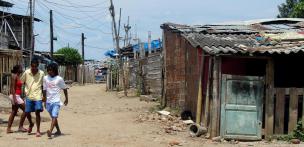 Neben dem historischen Zentrum und den hochmodernen Wohnanlagen, gibt es in der Stadt selbst mehrere Hüttensiedlungen, in denen aus anderen Landesteilen Vertriebene wohnen. Zu den Problemvierteln gehören Aguablanca, eine Wellblechstadt in den feuchten Flussniederungen des Rio Cauca, und Siloé an den Berghängen im Westen