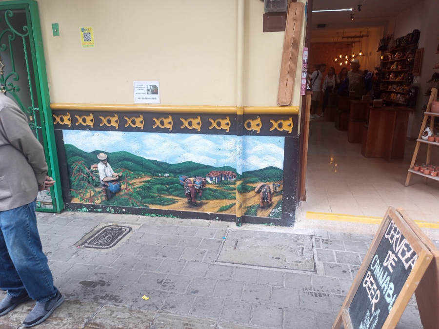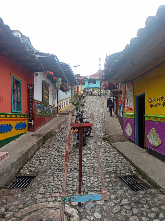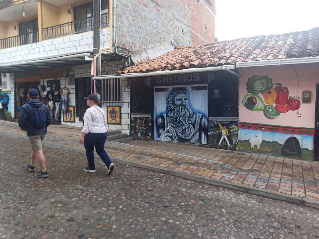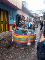 Nach der Bootsfahrt wollen wir die Stadt besichtigen. Mit den kleinen engen Gassen und ihren bunten Häusern wirkt Guatapé wie aus einem Bilderbuch. Nicht von ungefähr gilt dieser Ort als die bunteste ganz Kolumbiens. Handbemalte Keramiken schmücken die Hausfassaden. In den kleinen Gassen findet man kleine Läden mit Andenken und Kunsthandwerk. In einem der kleinen bunten Häuschen in der Innenstadt hat José Bermudez mit seiner Frau eine Schokoladenmanufaktur eröffnet.