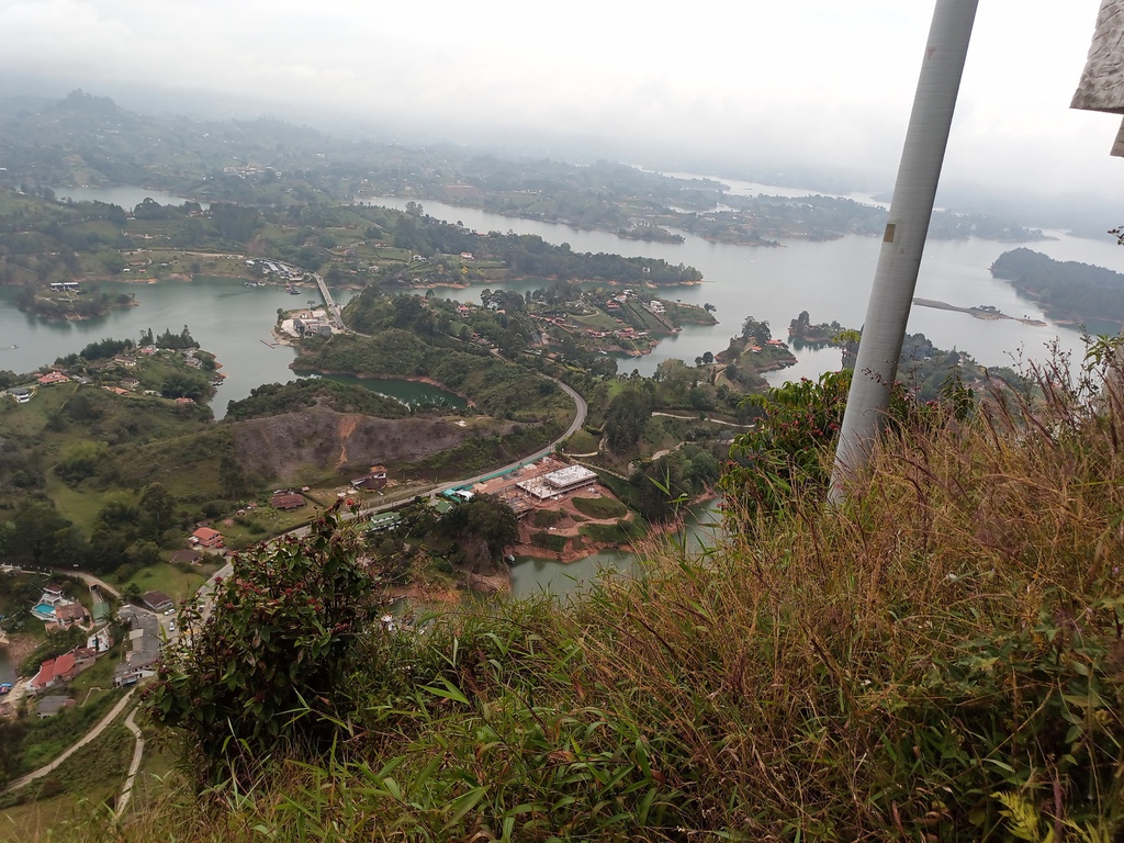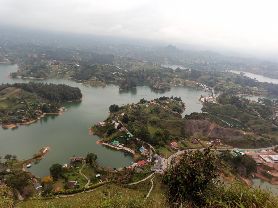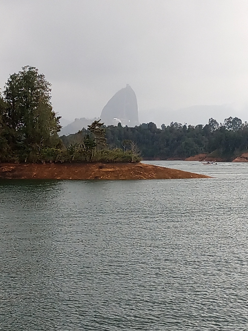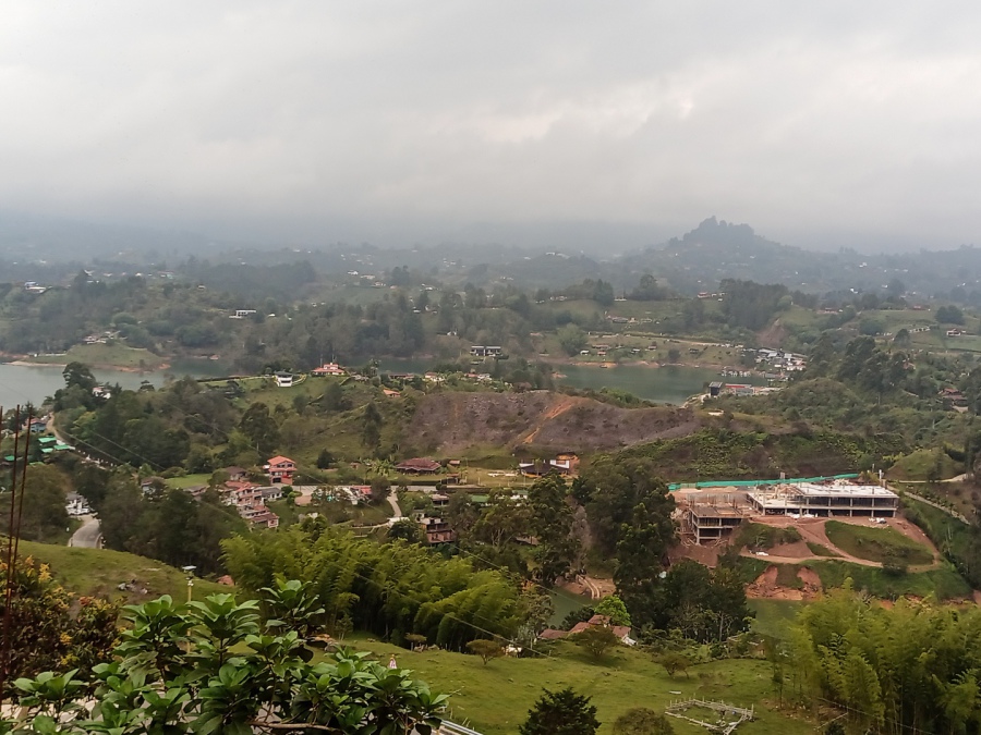 Die Rundfahrt hat mir abgesehen von der Kälte nicht besonders gefallen. Ehrlich gesagt, für mich Zeitverschwendung. Man sieht aus der Ferne den Felsen von Guatapé. Überall ragen kleine Inseln und Halbinseln mit Ferienhäusern, Villen und kleinen Palästen auf. Diese Inselchen waren früher Berggipfel.