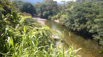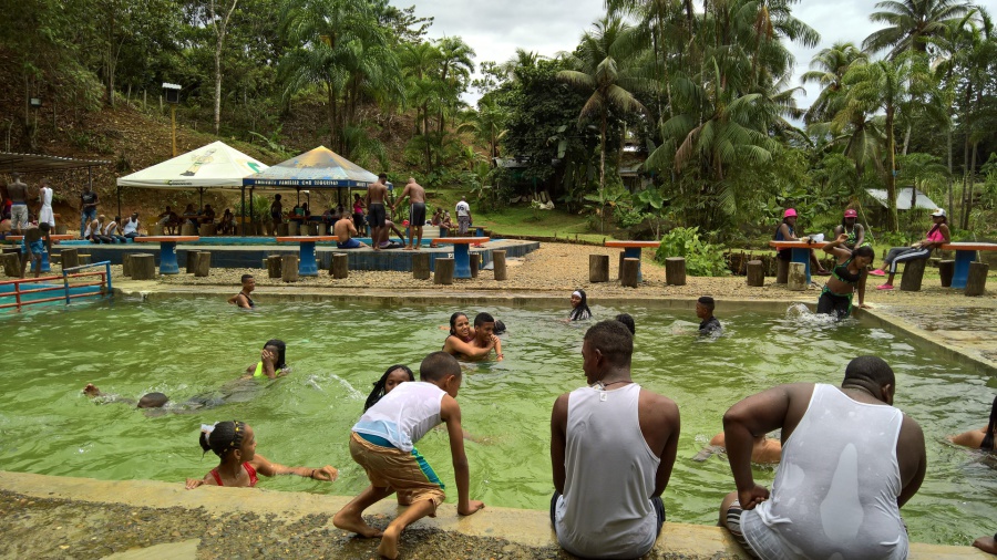 Mit diesem Gefährt fährt man ca. 20 bis 30 Minuten durch den Urwald nach San Cipriano und überquert dabei den Fluss Rio Danubio. San Capriano bewohnt von Afro-Kolumbianer ist der Ausgangspunkt für interessante Wandertouren durch den Urwald. Entlang eines Zuflusses zum Rio Danubio gibt es eine Unmenge von Badestellen. Ich war überrascht wie warm das Wasser war, obwohl es direkt von den Bergen kommt. Wenn ich daran denke wie kalt die Leusach in meiner Heimat in Oberbayern auch im Sommer ist. Aber Vorsicht beim Baden, die Strömung kann gewaltig sein.