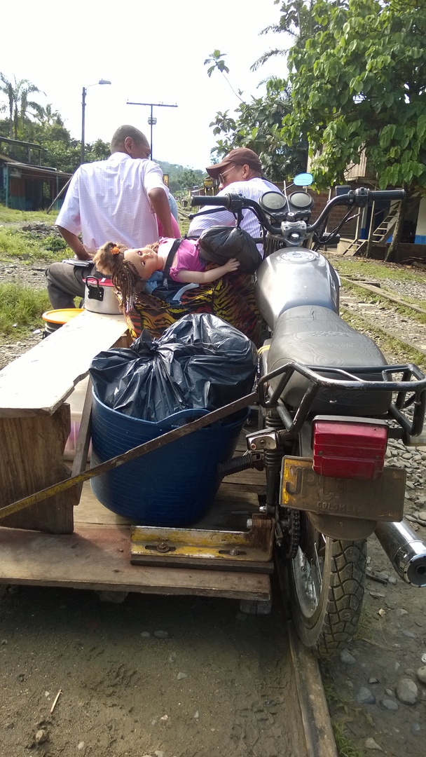 Die Fahrt mit diesen Motoradtransportmittel ist schon ein Erlebnis. Eine Blattform mit vier Rädern auf dem ein Motorrad fest installiert ist. Acht bis zehn Personen haben darauf Platz dieser Draisine Das Hinterrad des Motorrades ist so justiert das er, die Blattform auf der rechten Schiene vorantreibt. Kommt ein „Zug“ entgegen – kein Problem. Die Passagiere steigen ab und heben das Gefährt von den Schienen. Beim Wenden dasselbe Spiel. Damit wird alles Transportiert, Lebensmittel, Ziegen, Baumaterial, Menschen. Eine Straße gibt es nicht. Die Geschwindigkeit ist beachtlich. Kommt, steigt einfach mit auf und fahrt ein Stück mit.
