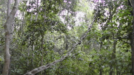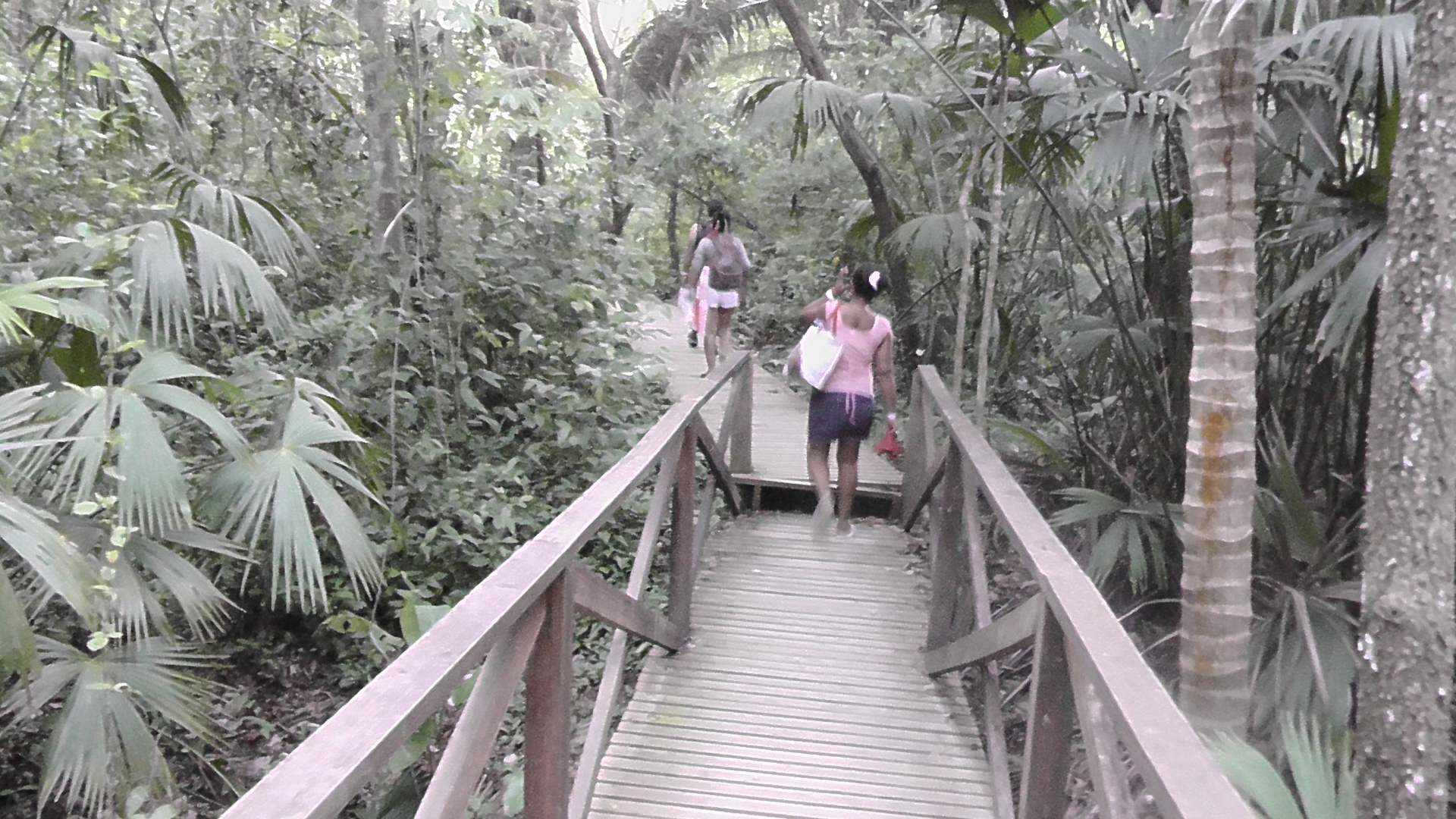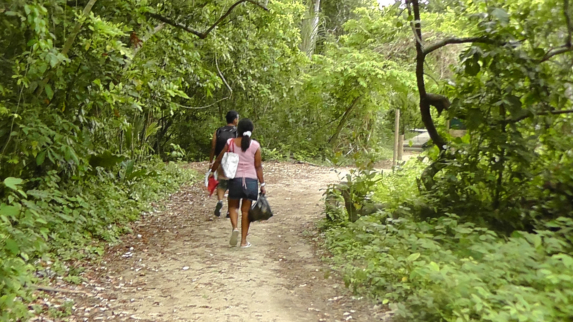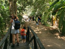 Von Canaveral nach Arrecifes kann man zu Pferden reißen, aber die meisten nehmen eine Wanderung im Kauf. An der Endhaltestelle läuft man ein Stück Richtung Küste und überquert eine Mulde beistehendem Wasser über eine Holzbrücke. Nach ca. 100 Meter beginnt der ökologische Wanderweg durch den Urwald.