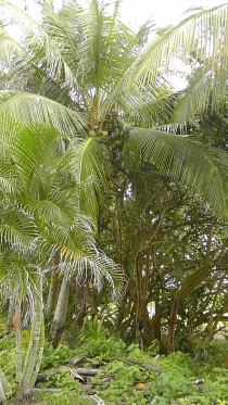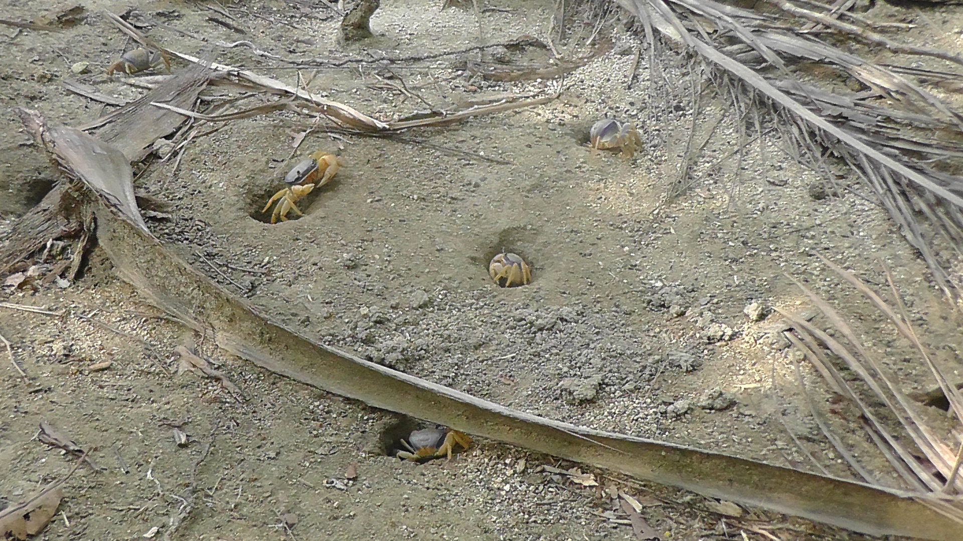 Weiter geht es, diesmal durch Felsen bergab und den langen Sandstrand unter direkter Sonneneinstrahlung entlang bis eine rettender Schatten eines Palmenwaldes kommt. Wer aufmerksam ist kann unterwegs Echsen beobachten die geschwind unter den vorhandenen Felsen die Flucht ergreifen. Jetzt läuft sich bedeutend besser unter dem Schatten der Palmen. Gleich zu Beginn hat sich ein Eingeborener platziert der Kokosnüsse als Erfrischung verkauft. Wir durchqueren den Wald und haben die erste Etappe, Arrecifes erreicht.