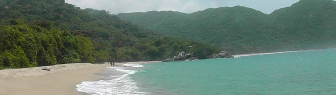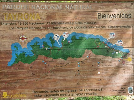 Der Tayrona-Nationalpark wurde 1969 gegründet mit einer Fläche von etwa 15.000 Hektar, wovon ca. 3000 Hektar maritim sind. und nach dem hier früher beheimateten indigenen Stamm der Tairona-Indianer benannt ist. Er verläuft 35 km zwischen der kolumbianischen Karibikküste und dem Gebirge Sierra Nevada bis hin zur Mündung des Río Piedras im Osten.
