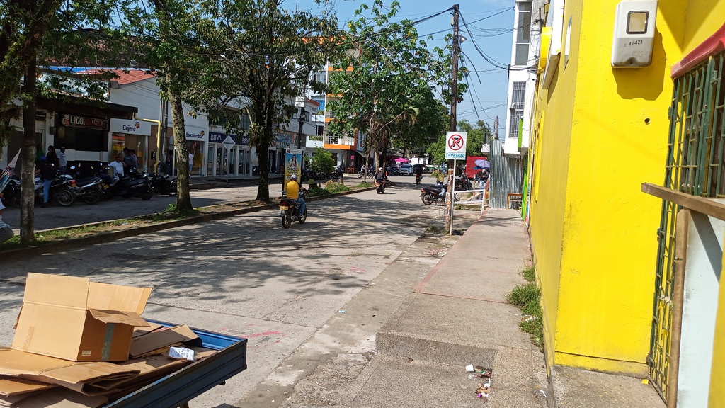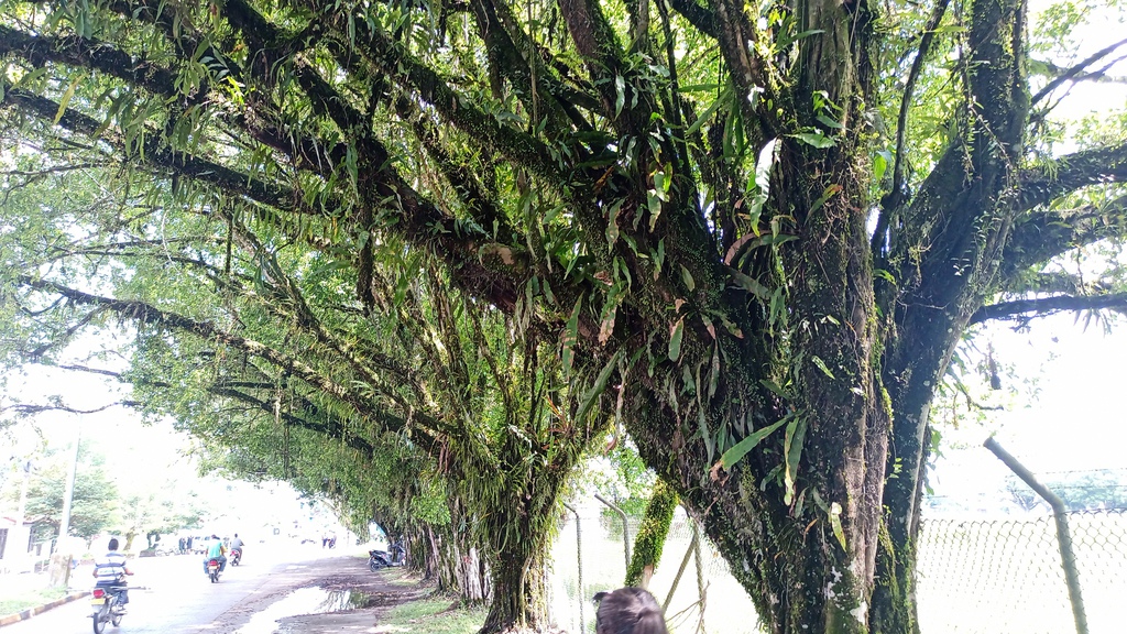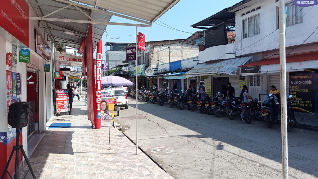 Ich schlendere die Carrera 20 Richtung Zentrum entlang. Besonders schön finde ich die Alten mit Moos und anderen Pflanzen bewachsene Bäume, die zwischen Straßenrand und Abgrenzungszaun des Flughafens stehen. Dazwischen Straßenhändler die frisches Obst und Säfte verkaufen. Auf der anderen Seite kleine Geschäfte.