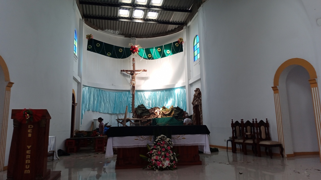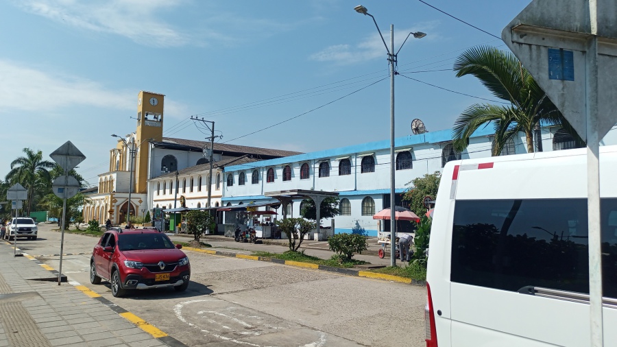 Paar Minuten später stehen wir auf den Zentralen Platz Puerto Asis. Uns gegenüber die Kirche San Francisco de Asis und das Colegio Ciudad De Asís.