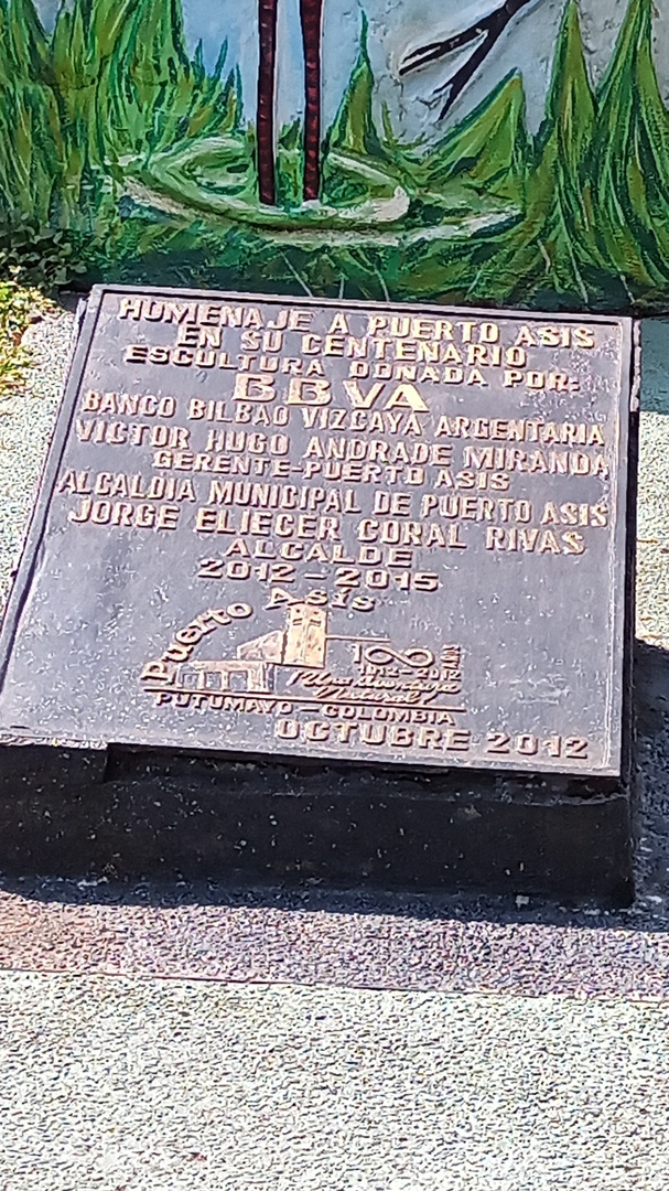 Es ist aus hochwertiger Bronze gefertigt und stellt die 4 symbolischen Charaktere der historischen Ereignisse dar, die Entwicklung von Puerto Asís prägen. Sein Designer war Arnol Ojeda. Dieses Projekt kann dank der Unterstützung der Stadtverwaltung von Puerto Asís und der von Geschäftsleuten und Kaufleuten gespendeten Ressourcen verwirklicht werden.
