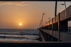 Küte südlich der Pier Touristisch interessant dürfte der Sandstrand sein mit dem leider nicht mehr vollständig erhaltenen Hafenmole. Es ist ein sehr weiter Strand mit schwarzem Sand. Von Juni bis November blaues und ruhiges Meer, in Dezember bis Mai, Surfer-Paradies mit viel Wind und Wellen. Zentrum dieses Strandes sind lieb voll errichtete Hütten, die hervorragendes Essen servieren.